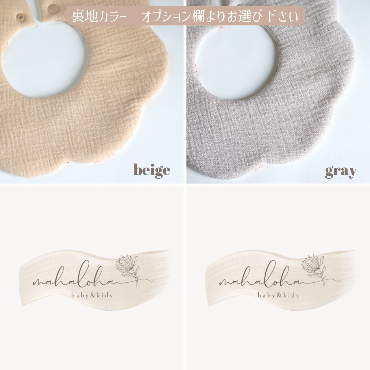 赤ちゃんの肌に優しいオーガニックコットン生地を使用した華やかなデザインのベビースタイです。