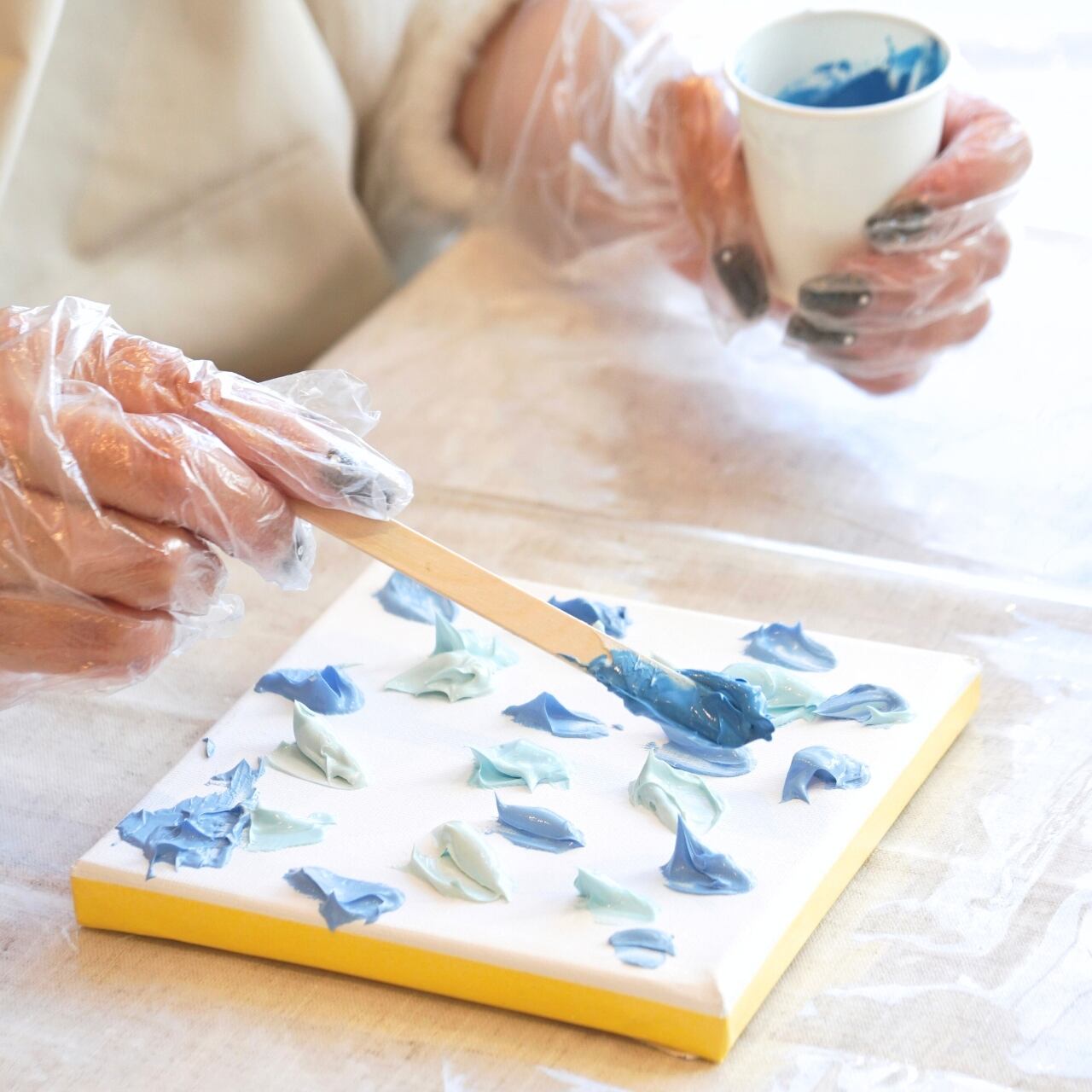 プレートの裏には強力両面テープが貼ってありますので、アートが完全に乾燥してから貼り付けてください。