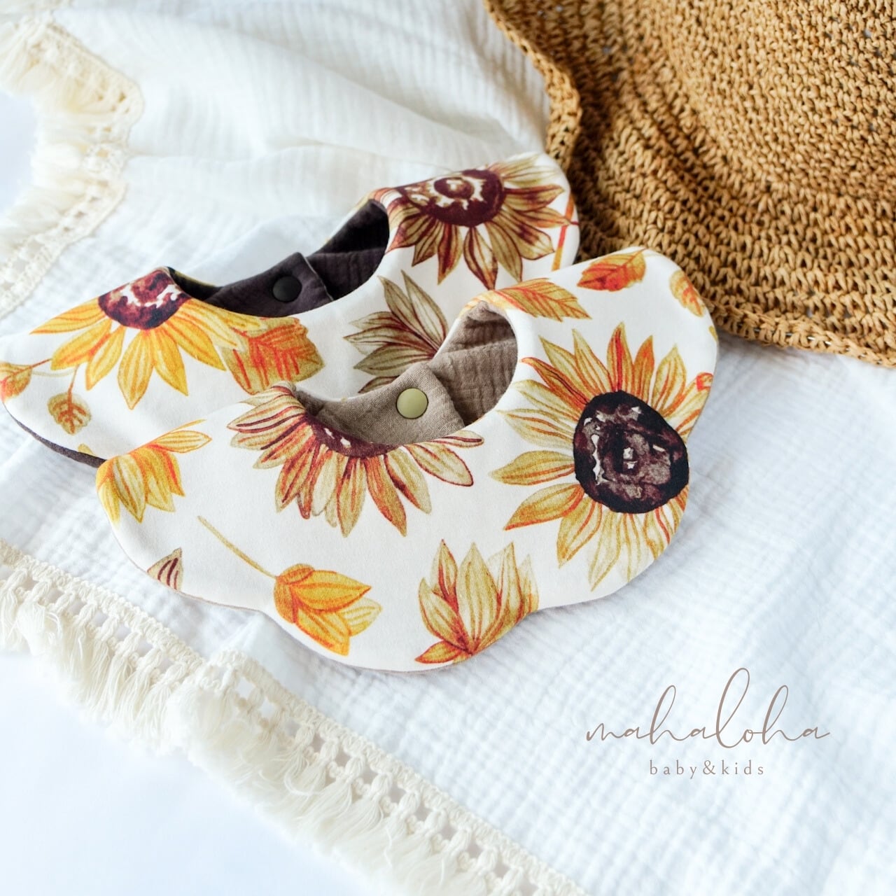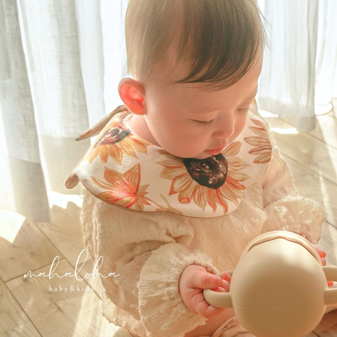 出産祝い ギフト プレゼント ベビーギフト シンプル よだれかけ ビブ 出産準備 お食い初め 記念日撮影 新生児 赤ちゃんコーデ かわいい かっこいい おしゃれ オシャレ 女の子ベビー 男の子ベビー くすみ カラー 向日葵 ひまわり ヒマワリ
