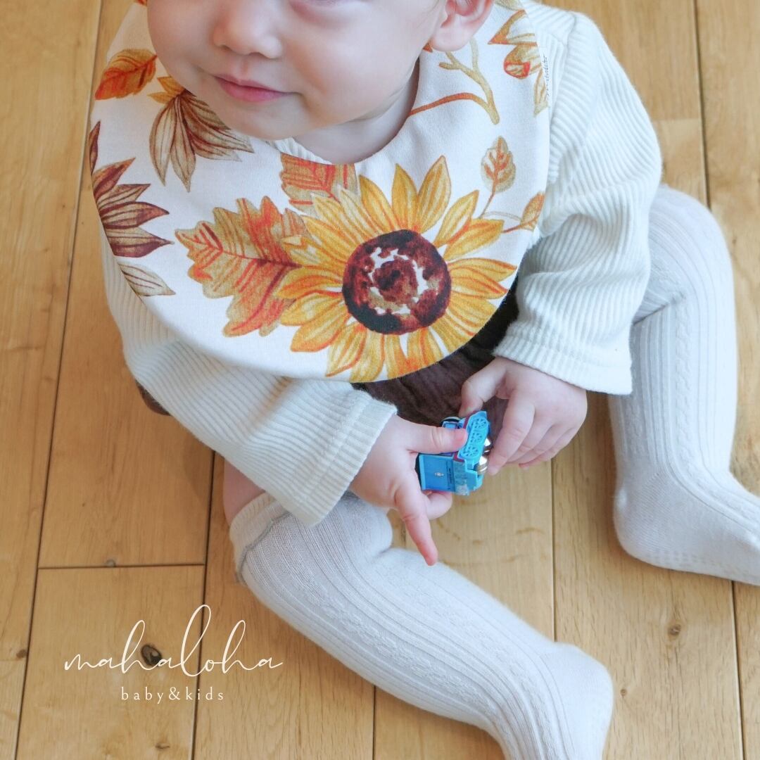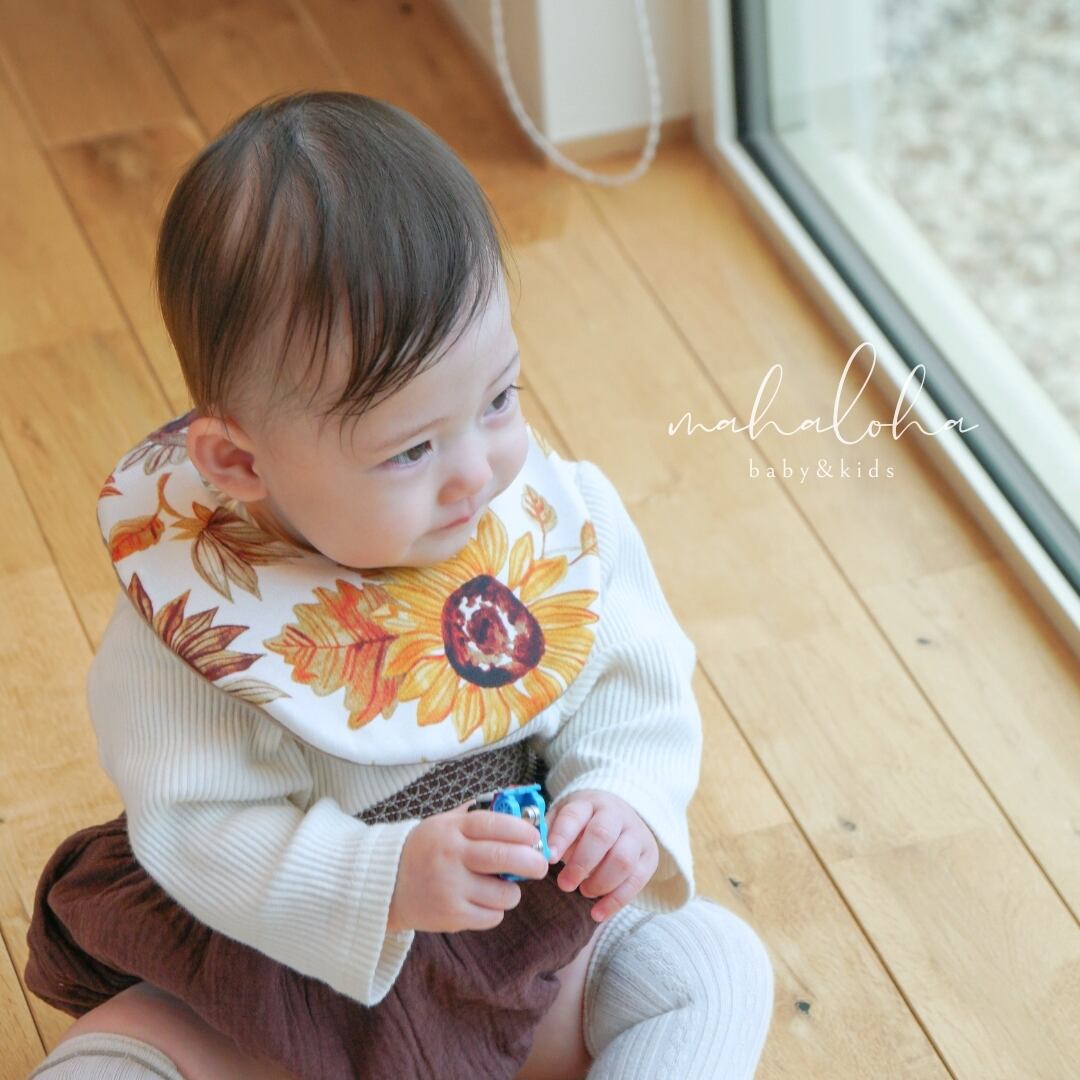 出産祝い ギフト プレゼント ベビーギフト シンプル よだれかけ ビブ 出産準備 お食い初め 記念日撮影 新生児 赤ちゃんコーデ かわいい かっこいい おしゃれ オシャレ 女の子ベビー 男の子ベビー 向日葵 ひまわり ヒマワリ くすみ カラー