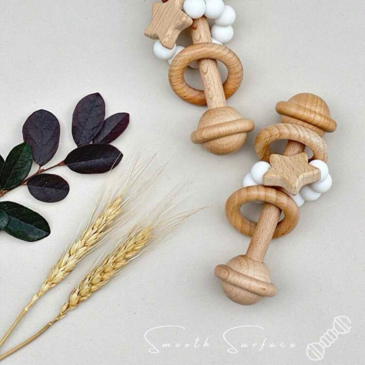 木製、シリコンビーズ